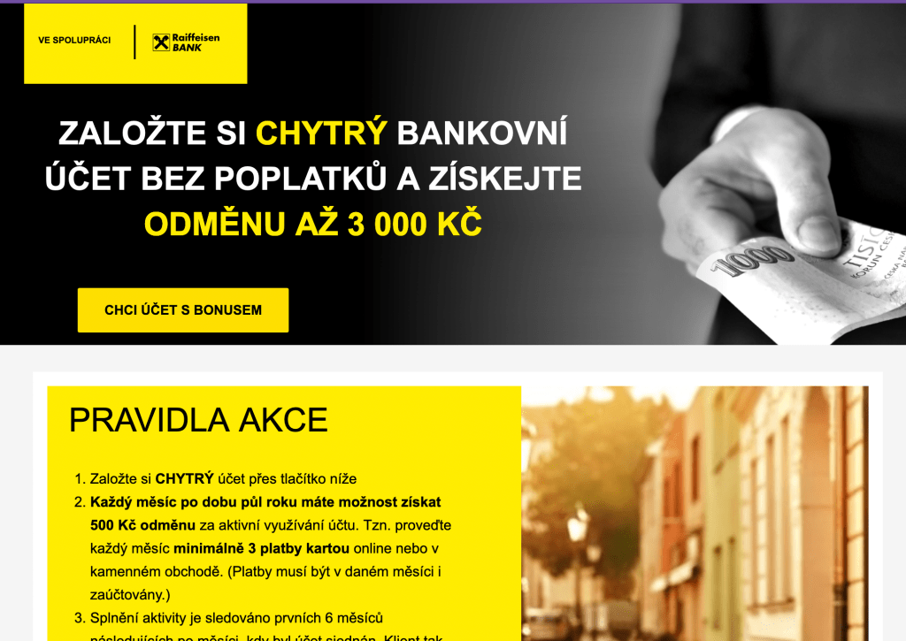 Znáte to; reklamy na banky a všude nějaké háčky. Tak jsme se pokusili nachytat Raiffeisen Banku a zjistli jsme, že asi opravdu rozdávají 3000 každému. Háček je v tom, že si musíte založit jejich účet a každý měsíc 3x zaplatit jejich kartou. Výhoda je, že účet i karta je zdarma, takže jsme šli do toho a účet si založili. Jak na to a proč si dát pozor na vyplňování popíšeme v následujícím návodu.