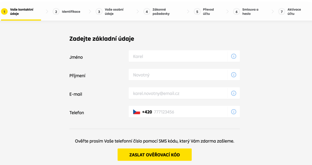 Vyplňte formulář. Budete potřebovat email, funkční telefon, na který vám přijde sms s heslem, zadejte kód z sms a pokračujte dál.