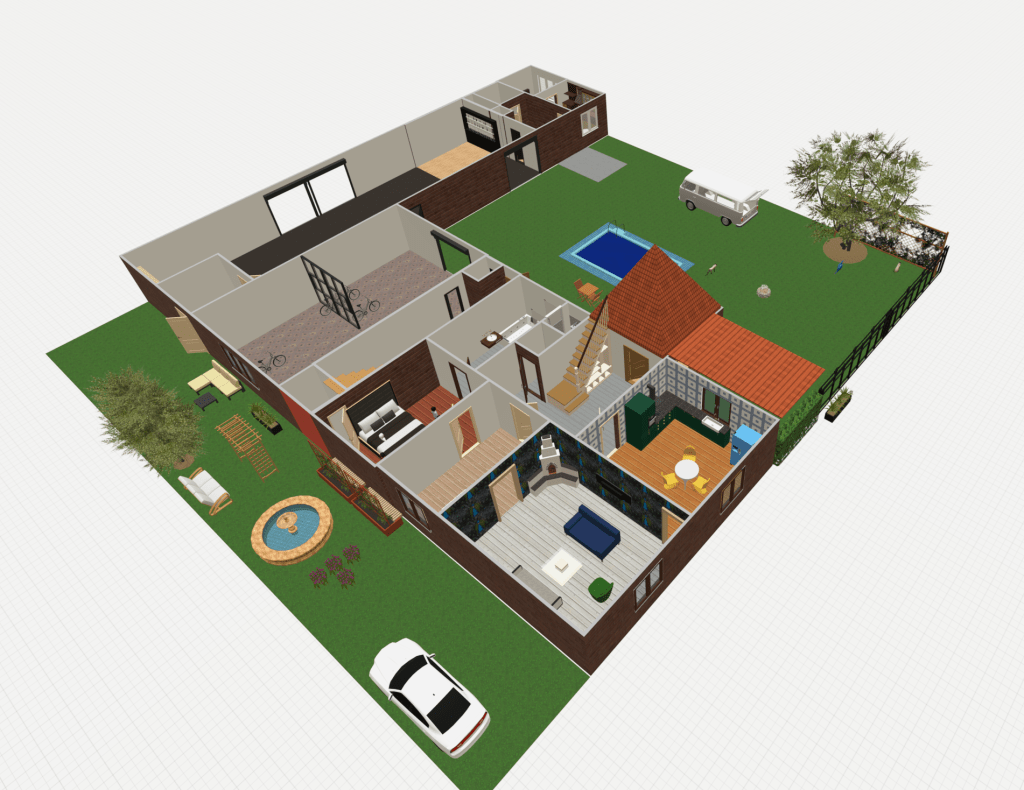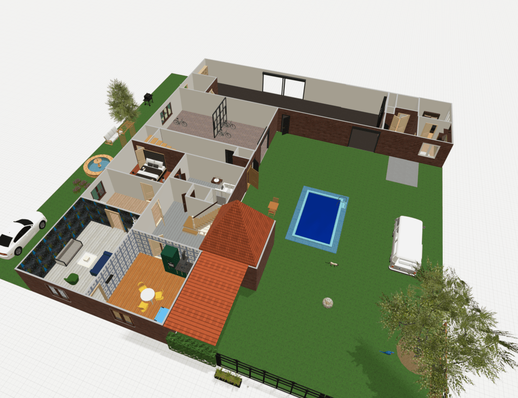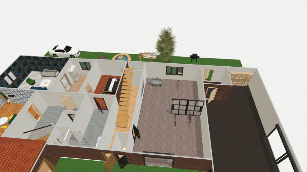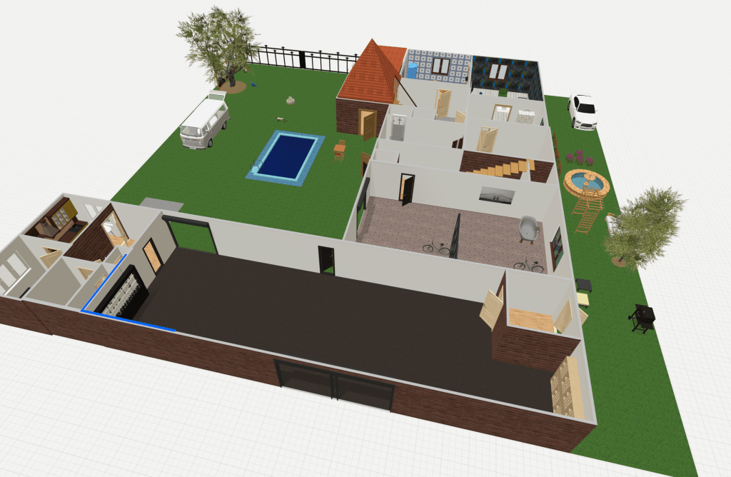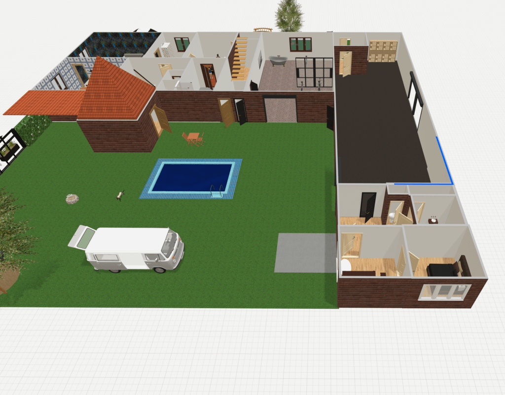 Základem vizualizace je původní půdorys a rozvržení místností a prostor. Dílna – garáž je přeměněna na cyklopůjčovnu, která v tomto kraji nabízí unikátní trasy pro cyklo výlety.